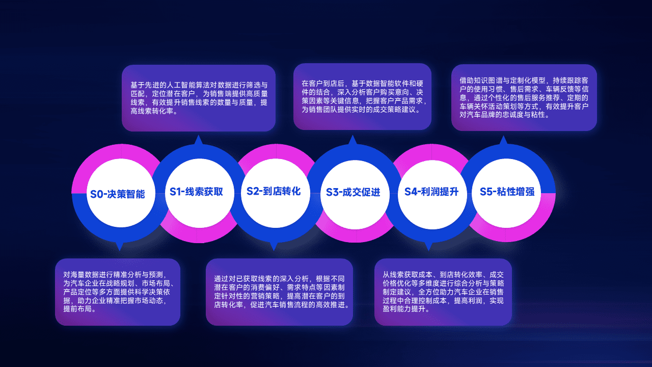 通过拓宽潜在客户来源、、、优化线索分配并提高到店转化率,,以增强销售效率。。同时,,,,利用线索数据不断优化分析模型,,,有效提升转化率,,扩大营销影响力。。。